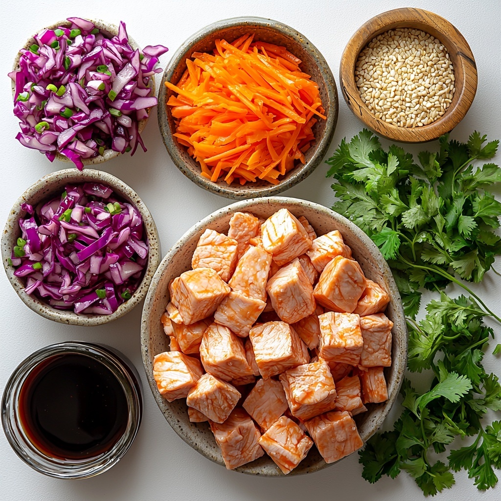The beauty of the Applebee’s Chicken Wonton Tacos Recipe lies in its simple but vibrant ingredient list. Each component adds to the overall harmony—whether it’s the succulent glazed chicken, the crisp wonton shells, or the fresh, crunchy coleslaw. Here’s exactly what you’ll want ready for this flavorful dish: