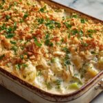 Once out of the oven, sprinkle chopped green onions across the top for a fresh, slightly sharp contrast to the rich casserole. If you want extra crunch, toasted panko breadcrumbs can be added before baking, giving the top a delightful crisp texture.