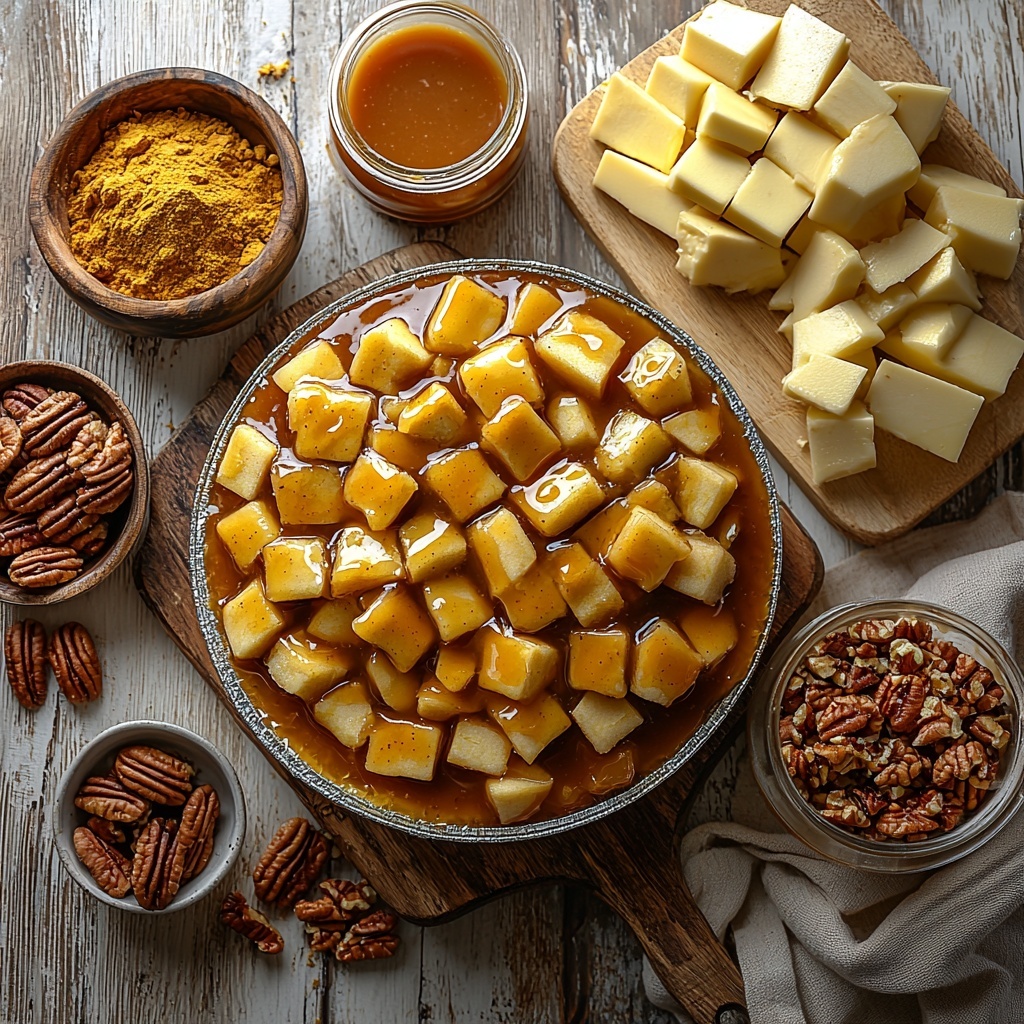 Gathering these simple ingredients is the first step toward creating your own Caramel Apple Dump Cake Recipe. Each one plays a vital role—from the sweet and spiced apple filling to the buttery topping that crisps to perfection, these components are exactly what makes this dessert so irresistible.