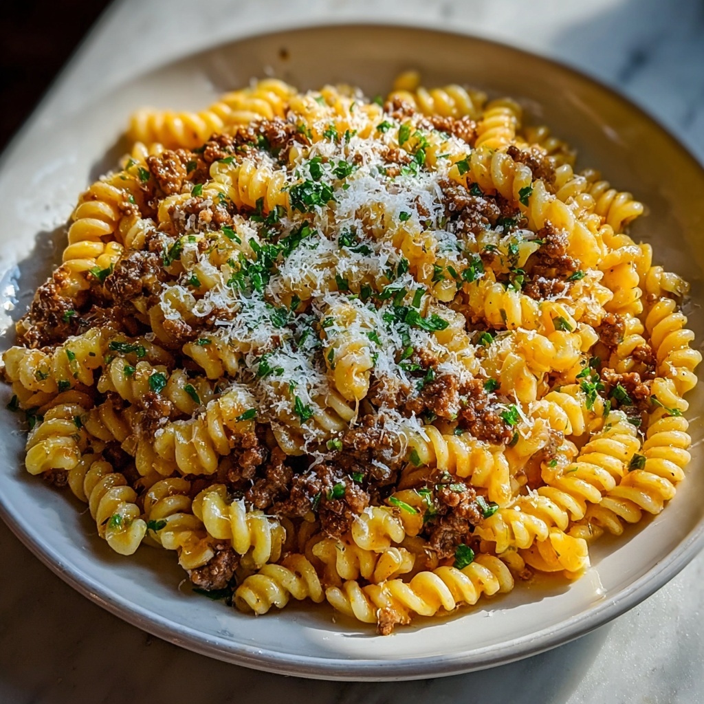 A flavorful and creamy Cheesy Garlic Twisted Pasta featuring Cajun-spiced ground beef, rich Velveeta and Alfredo sauce, topped with melted mozzarella or parmesan cheese and fresh herbs. This hearty dish combines bold Cajun seasonings with a smooth cheesy sauce, perfect for a satisfying dinner in under an hour.