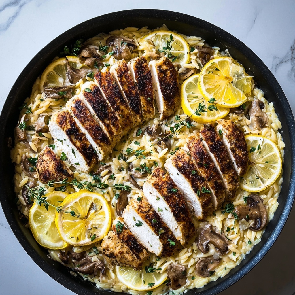 Creamy Cajun Chicken Orzo is a flavorful and comforting one-pan meal featuring tender Cajun-spiced chicken served over a rich and creamy orzo pasta. This easy-to-make dish combines the spicy kick of Cajun seasoning with the smoothness of Parmesan and heavy cream, garnished with fresh thyme and lemon wedges for a bright finishing touch.