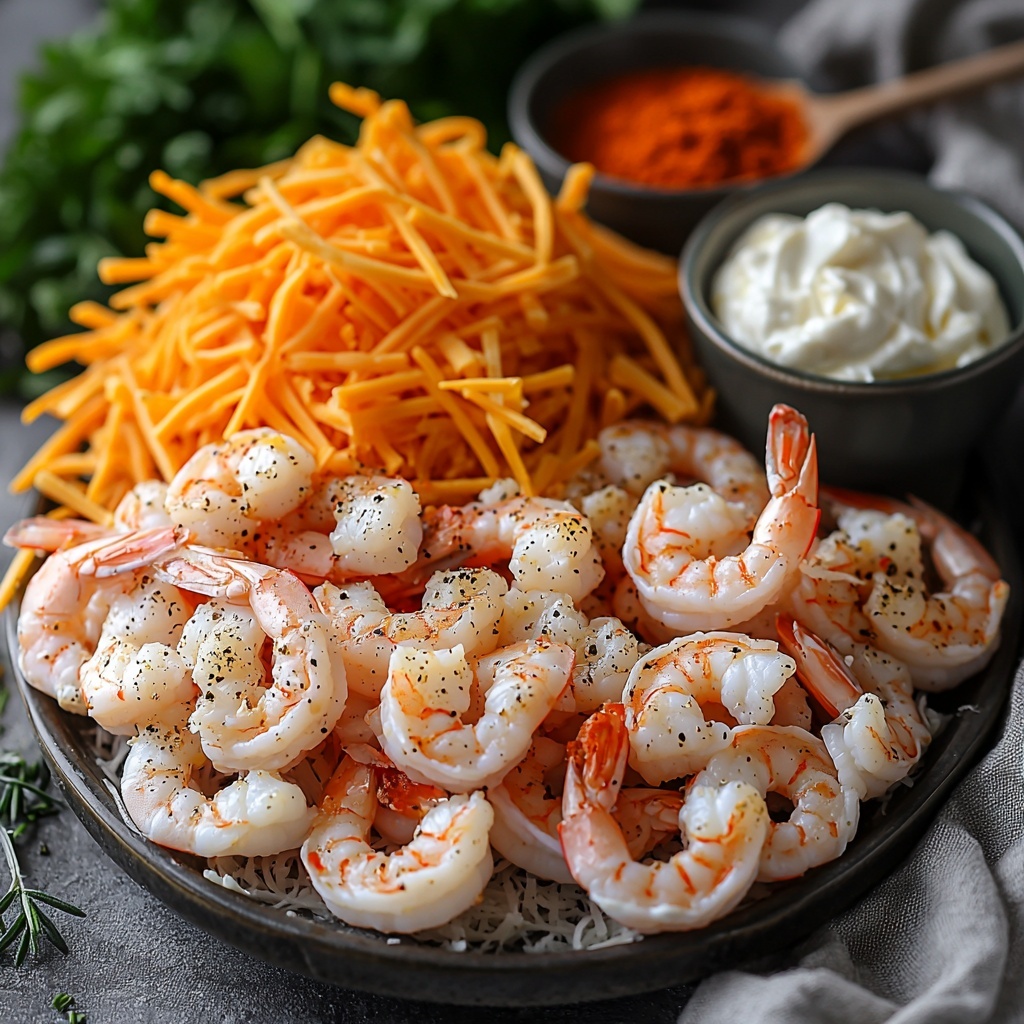• 4 ounces shredded medium cheddar cheese: Brings a sharp, tangy punch that complements the shrimp beautifully.