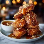This Crunchy Hot Honey Chicken recipe features crispy baked chicken breasts or thighs coated in a flavorful seasoned panko breadcrumb crust, then glazed with a sweet and spicy hot honey sauce. The combination of crunchy texture, spicy kick, and honey’s sweetness makes this dish irresistibly delicious and perfect for a quick weeknight dinner or a crowd-pleasing meal.