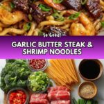 A delicious and flavorful Garlic Butter Steak and Shrimp Stir-Fried Noodles recipe combining tender sirloin steak, succulent shrimp, and fresh vegetables tossed in a savory Asian-inspired garlic butter sauce. Perfect for a hearty main course that’s ready in just 35 minutes.
