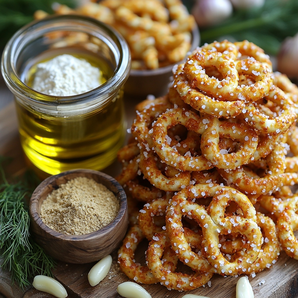 This Garlic Ranch Pretzels Recipe calls for simple pantry staples that pack serious flavor. Each ingredient plays its role in delivering that irresistible combo of savory, tangy, and herbal notes while ensuring the texture stays perfectly crisp and snackable.