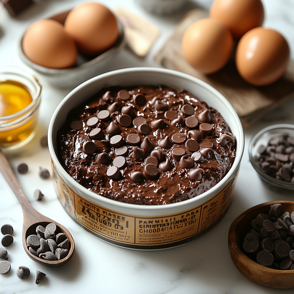 Start by combining the triple chocolate cake mix, eggs, water, and oil in a large bowl. Stir everything together until you have a smooth, velvety batter. This is where all the magic begins — getting these basics right means your cake will turn out perfectly moist and rich.