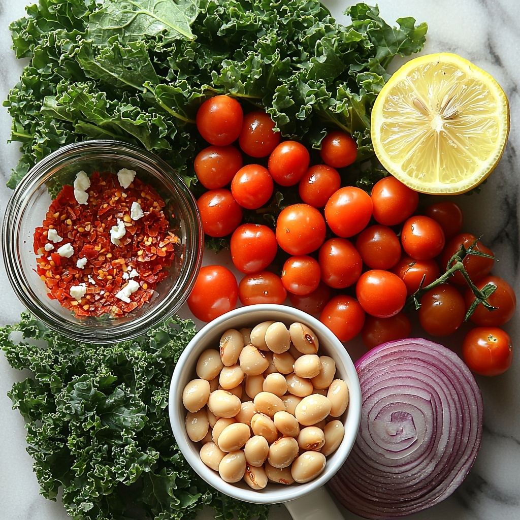 These simple, wholesome ingredients lay the foundation for this flavorful Mediterranean White Beans & Greens Recipe. Each one plays an essential role, bringing layers of taste, texture, or that gorgeous color to the skillet. Let’s break them down: