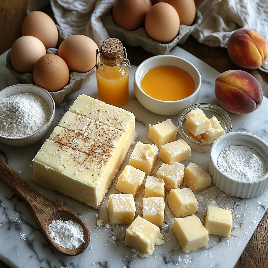 To make this Peach Buttermilk Pound Cake Recipe truly shine, you’ll want to gather simple but high-quality ingredients. Each one plays a vital role, from the creamy butter that builds richness, to the tangy buttermilk that keeps the cake wonderfully moist, and of course, the peaches that bring that unmistakable burst of fresh flavor and color.