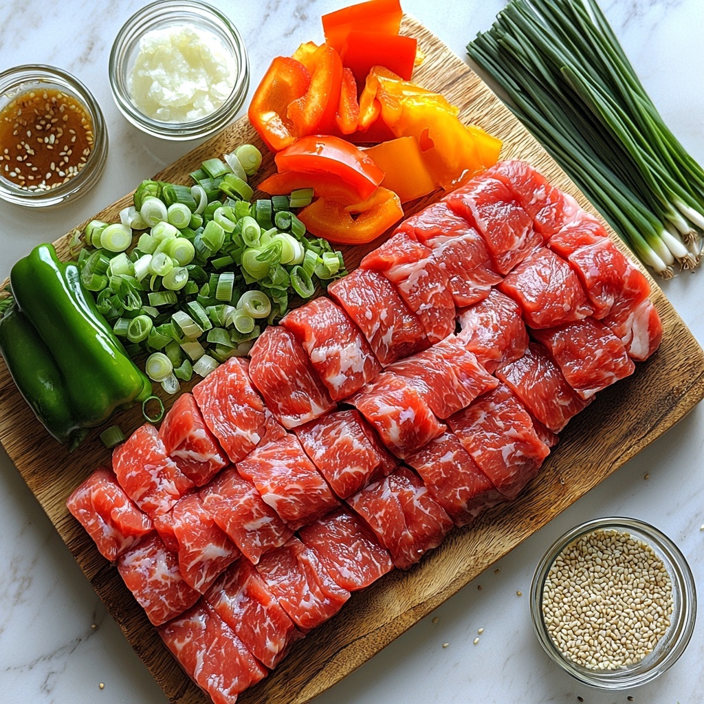 - 1 pound flank steak or sirloin: Choose a tender cut and slice thinly against the grain for the best texture.