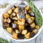 To reheat, gently warm the eggplant cubes in a skillet over medium heat or pop them in the oven at 350 degrees until they’re warmed through and regain some of their crispiness. Avoid the microwave if you want to keep the texture intact.