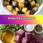 Cutting the eggplant into uniform cubes and roasting at a high temperature in a single layer ensures they cook evenly and develop a crisp exterior without becoming soggy.