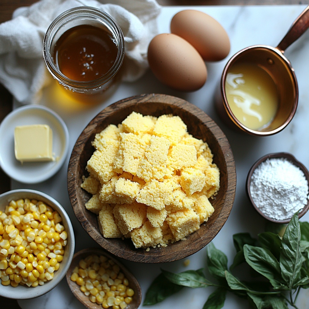 To make these irresistible poppers, you’ll rely on a handful of staple ingredients that are simple yet vital for delivering the perfect texture and flavor. Each component contributes to the delightful balance of sweetness, moisture, and that signature Southern cornbread crunch.